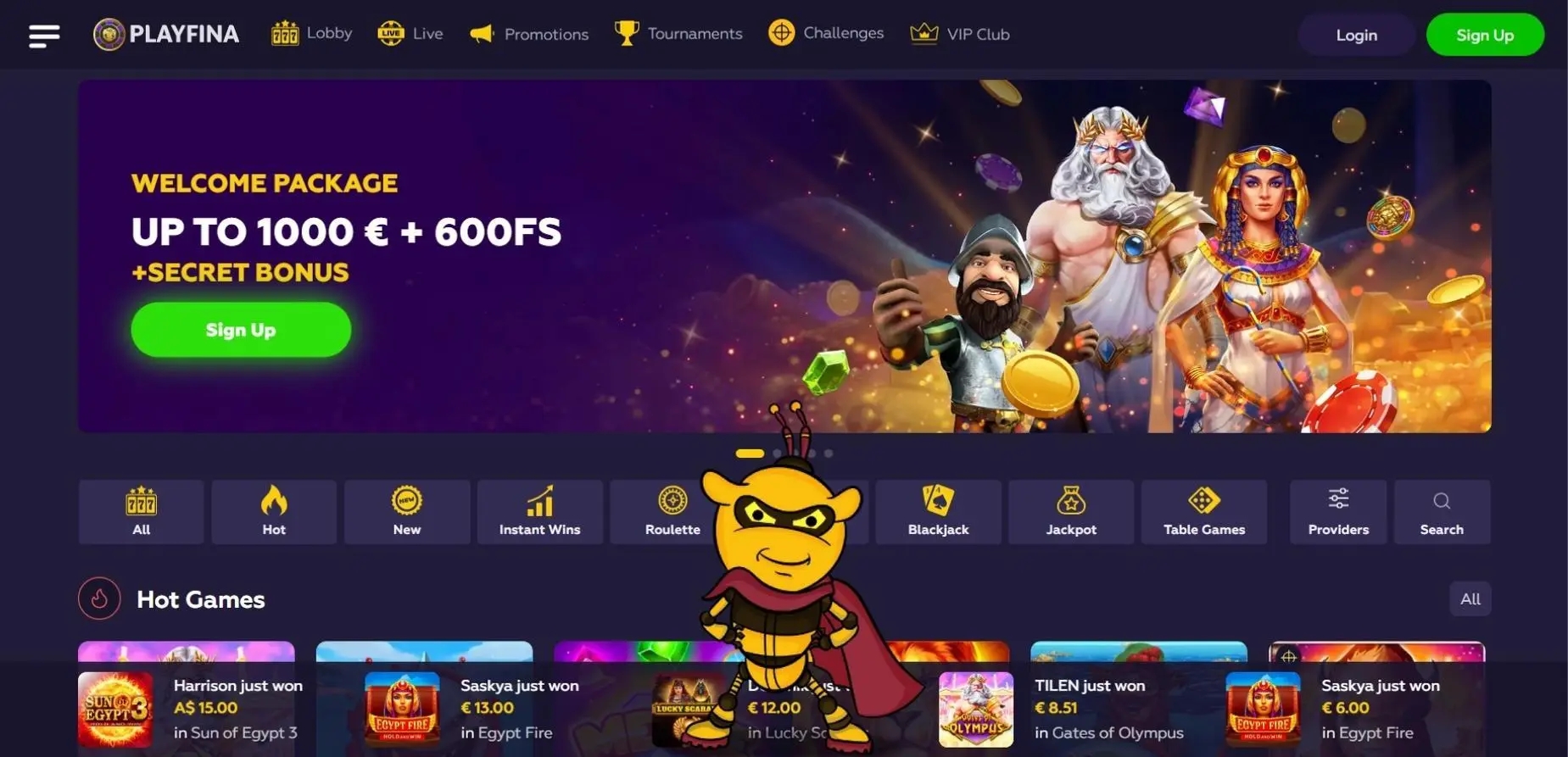 Log in to your Playfina account or sign up if you are a new player.